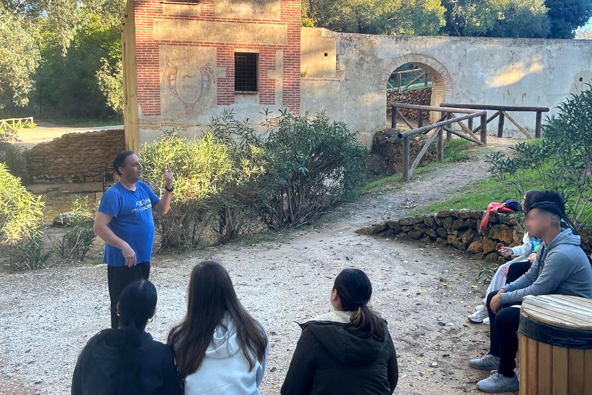 La actividad comenzó con una breve presentación del entorno, en la que se ofreció una explicación inicial sobre el Parque y la importancia histórica de los molinos harineros que forman parte del patrimonio de la zona. Tras esta introducción, el grupo inició una ruta por los senderos principales del Parque, disfrutando del paisaje, de la vegetación de la ribera del río Guadaíra y del ambiente que rodea este paraje natural protegido. Al llegar a los molinos, el guía realizó una explicación sobre su valor histórico y cultural, así como su función tradicional dentro de la economía local.