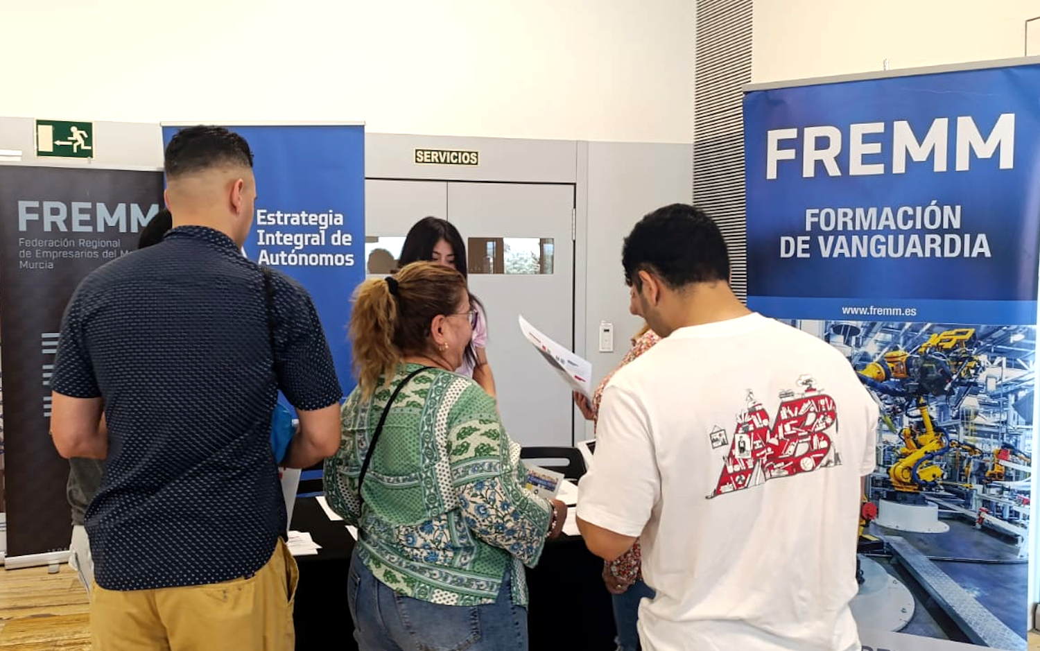En este contexto, un grupo de seis usuarias y usuarios del mencionado programa - subvencionado por el Ministerio de Trabajo y Economía Social, el Gobierno de la Región de Murcia y el Servicio Regional de Empleo y Formación (SEF)- participó en la X Feria de Empleo de la FREMM (Federación Regional de Empresarios del Metal de Murcia). En la visita estuvieron acompañadas y acompañados por la orientadora del programa.