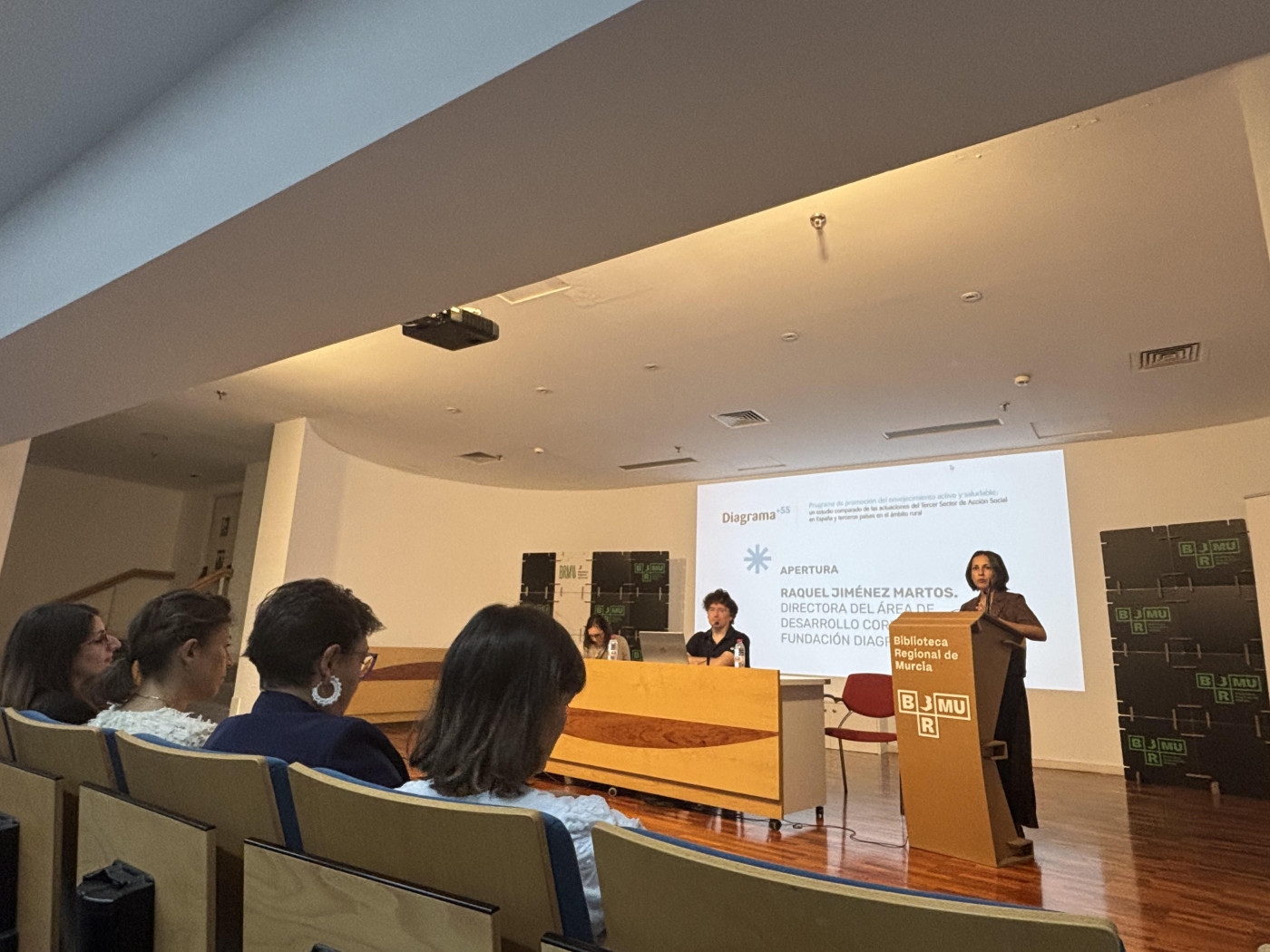 Visibilizar las buenas prácticas del Tercer Sector de Acción Social en materia de envejecimiento activo y saludable en el entorno rural ha sido el objetivo de la jornada celebrada por Fundación Diagrama, ayer 29 de octubre, en la Biblioteca Regional de Murcia. Un evento que reunió a personas expertas y entidades sociales con el objetivo de exponer las iniciativas desarrolladas en la atención a personas mayores y avanzar en el nivel de participación de las mismas en la sociedad.