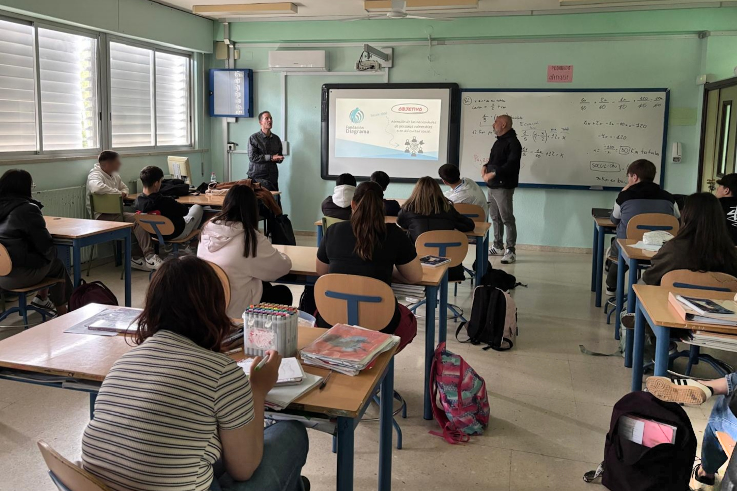 De esta forma, un educador y un maestro del SIMA realizaron cinco charlas a un total de 150 personas jóvenes de distintos niveles educativos en las que expusieron los distintos perfiles profesionales que trabajan en el ámbito de la intervención social en Fundación Diagrama. La exposición comenzó con una breve presentación de la labor de la entidad, pasando posteriormente a explicar los recursos que gestiona en la provincia de Córdoba, tanto el SIMA como el centro de internamiento ‘Medina Azahara’. Con este hilo conductor, fueron desgranando el funcionamiento de cada recurso y los distintos puestos de trabajo que existen en ellos, a qué se dedican, qué tipo de población atienden y cuál es la formación que requieren.