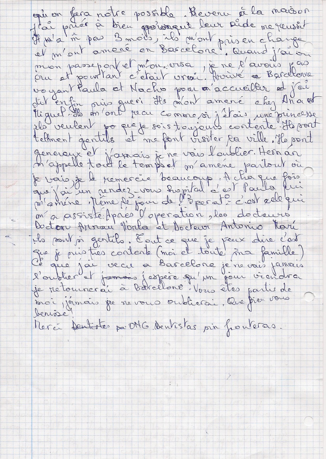 Esta es la carta que Amina remitió al Presidente de Dentistas Sin Fronteras en agradecimiento: