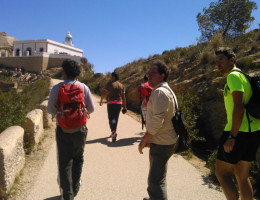 La primera visita guiada que realizaron los jóvenes y sus educadores fue al Parque Natural Marítimo de la Serra Gelada, en Alfaz del Pi, constituido en un 80% por mar y el restante 20% por tierra. El biólogo que acompañó a los menores les enseñó la flora y fauna de la zona, destacando especies autóctonas como el halcón peregrino y el delfín mular. Asimismo, les mostró las minas de ocre que han quedado abiertas en los barrancos de l’Albir, tras su explotación desde la época de los fenicios hasta principios del siglo XX. La visita finalizó con una ruta hasta el Faro de l’Albir.