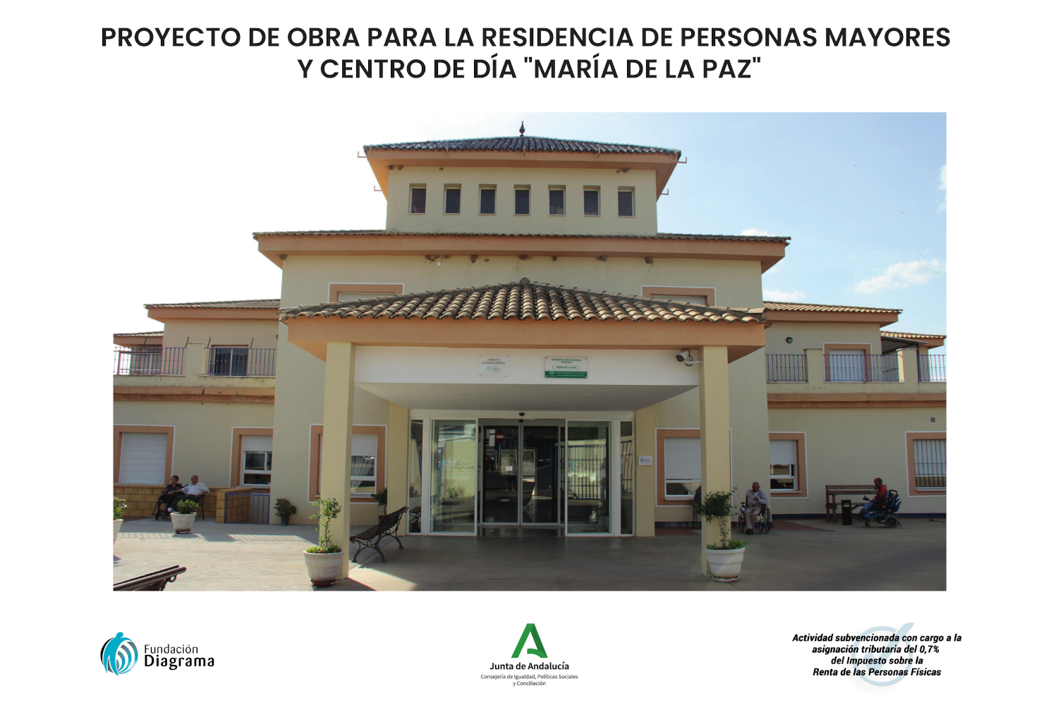 Uno de los principales objetivos del proyecto sociosanitario de la residencia ‘María de la Paz’ de Nerva (Huelva) es contribuir al bienestar de las personas usuarias. En esta línea, este recurso de Fundación Diagrama que tiene plazas concertadas con la Consejería de Inclusión Social, Juventud, Familias e Igualdad de la Junta de Andalucía ha desarrollado un Proyecto de obra de rehabilitación de sus instalaciones, subvencionado por la citada Consejería con cargo a la asignación tributaria del 0,7% de IRPF.