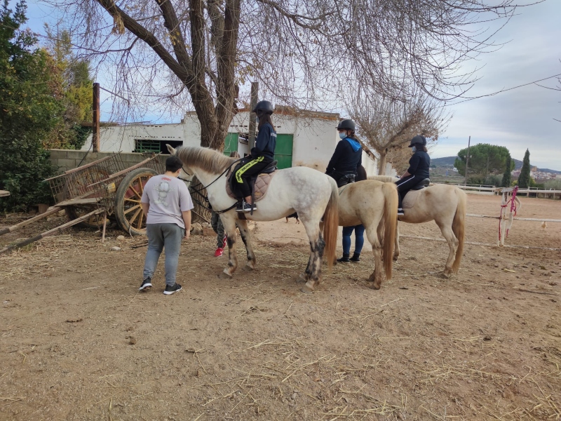 A lo largo de esta jornada, llevada a cabo en La Finca Cabanes - Asociación Ecuestre, las usuarias y usuarios estuvieron en compañía de una entrenadora de la entidad, quien les enseñó conocimientos y habilidades relacionados con el cuidado, la limpieza y el aseo tanto de los propios animales como de su hábitat. Además, se realizaron una serie de dinámicas individuales y grupales en las que se trató de generar una conexión afectivo-emocional entre los caballos y el grupo de jóvenes participantes, finalizando la actividad con un paseo por las instalaciones.