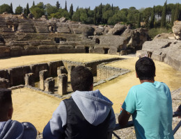 A lo largo de la actividad, los jóvenes conocieron algunos de los rincones más característicos de la localidad, comenzando su recorrido con una visita guiada por el Monasterio de San Isidoro del Campo en la que estuvieron acompañados por profesionales de la Oficina Municipal de Turismo de Santiponce. A continuación, los menores acudieron al yacimiento arqueológico de Itálica, donde pudieron pasear por el anfiteatro romano y descubrir los objetos de arte y utensilios de la vida cotidiana utilizados por sus antepasados.