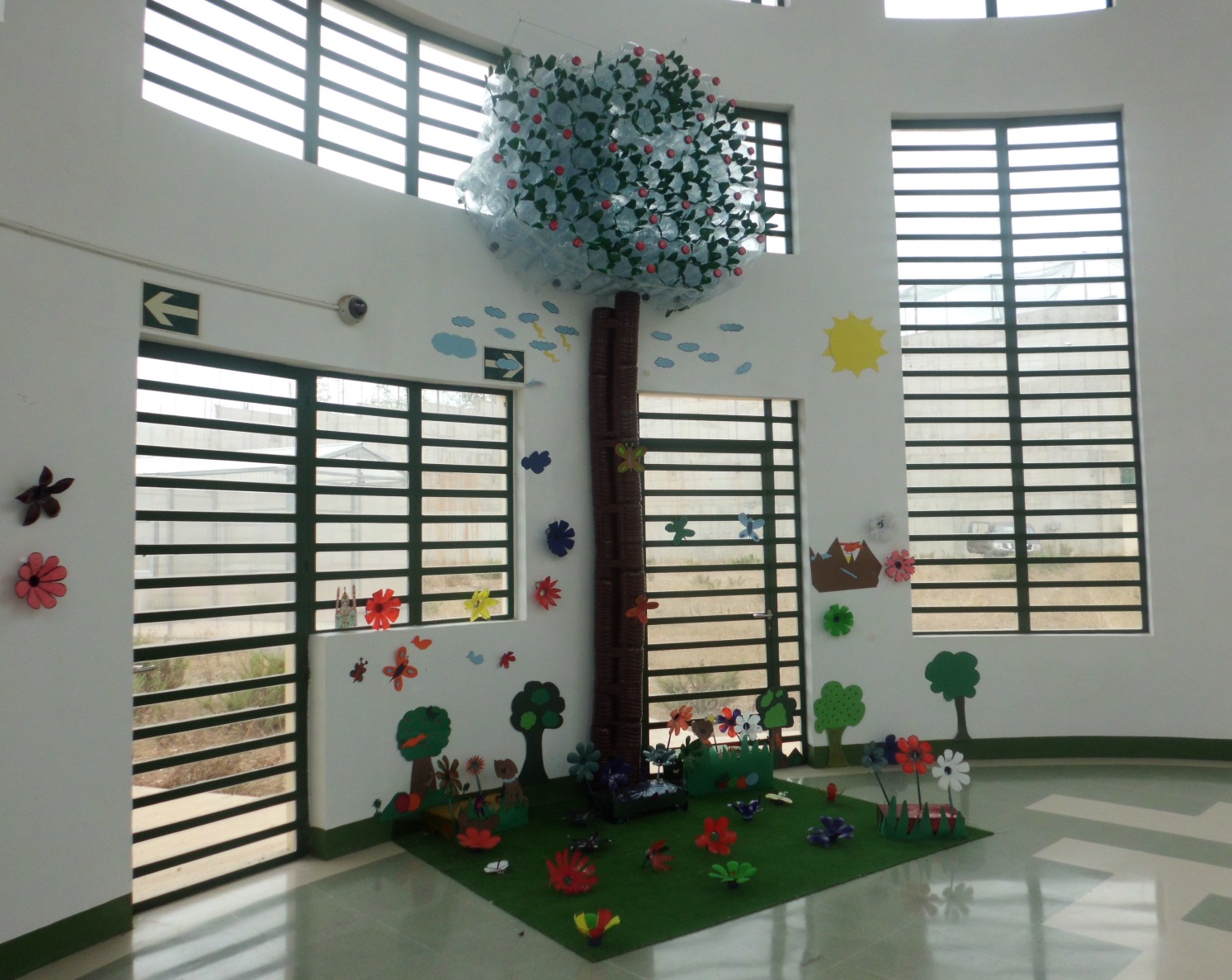 El programa se estructuró en dos partes. Durante la primera, los miembros del grupo de trabajo recopilaron información sobre reciclaje y procesos ecológicos para plantear ideas con las que reutilizar materiales. En una segunda fase, menores y educadores colaboraron en la elaboración de una figura con la que decorar los espacios comunes del centro empleando para ello garrafas de agua vacías y otros materiales no útiles. Para la unión de estas garrafas y la conversión en bloques se utilizaron barras de silicona caliente e hilo de pescar, creando así un tronco con base de tres unidades y altura de tres metros. Para las hojas del árbol se utilizaron unas 60 garrafas, creando una figura con un diámetro de aproximadamente cuatro metros.