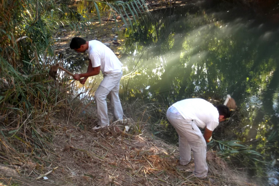 Un grupo de jóvenes del centro de reeducación ‘Mariano Ribera’, dependiente de la Conselleria de Bienestar Social y gestionado por Fundación Diagrama, tomaron parte como voluntarios en una actividad de conservación medioambiental promovida por la Fundación Limne, en la que ayudaron a conservar el ecosistema fluvial del río Turia mediante el saneamiento del cauce a su paso por Quart de Poblet.