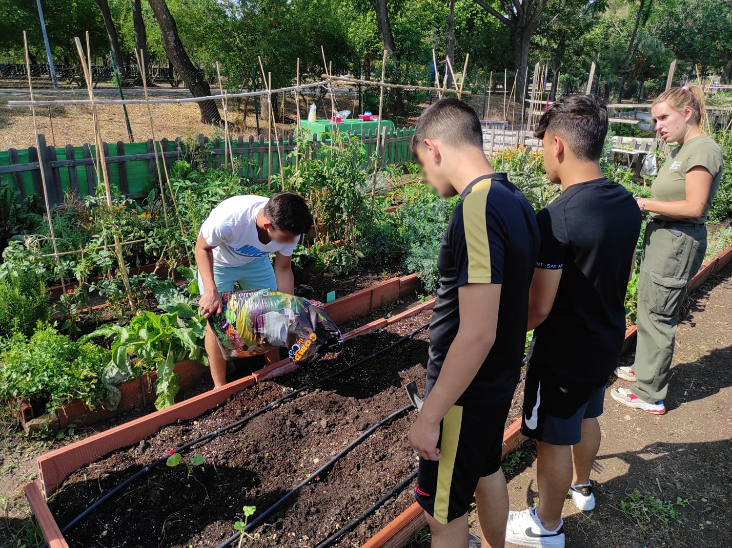 A su llegada al huerto, los jóvenes fueron recibidos por profesionales agrícolas municipales que les dieron una breve explicación sobre la historia del parque y las características de este proyecto agrícola. Posteriormente recorrieron los bancales para identificar las plantas, árboles, arbustos y plantas aromáticas que cuidan allí, además de la fauna que se puede encontrar. Tras ese primer contacto con la huerta, continuaron con los tipos de siembra y el manejo de las herramientas, que los menores ya conocían por el trabajo realizado en el huerto del propio centro.