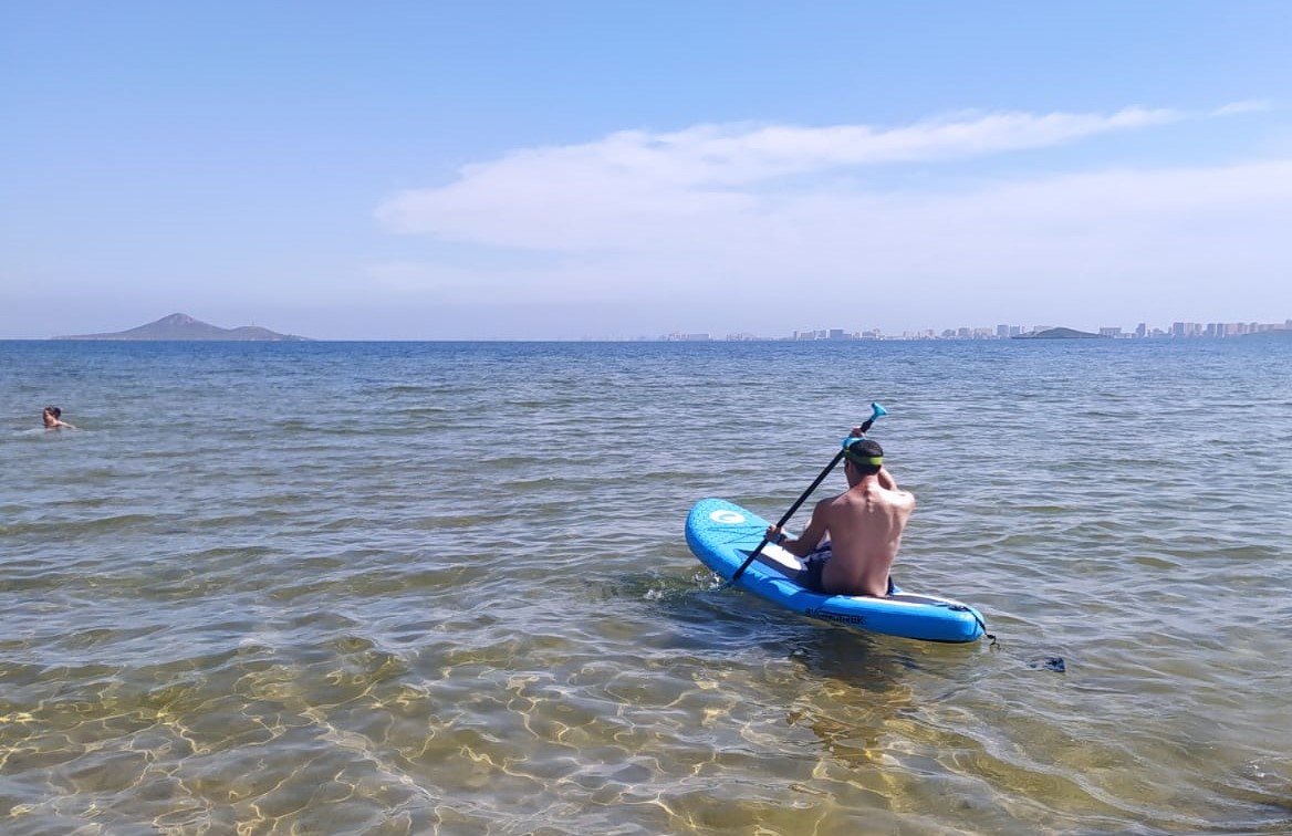 El pasado 11 de junio, un grupo de seis personas atendidas por Fundación Diagrama en el centro sociosanitario ‘Cristo de los Mineros’ de La Unión (Murcia), que cuenta con plazas para la atención de la enfermedad mental concertadas con la Consejería de Política Social, Familias e Igualdad a través del Instituto Murciano de Acción Social (IMAS), aprovecharon el inicio del buen tiempo para disfrutar de una salida de ocio deportivo a la playa del Mar de Cristal para practicar paddle surf junto a una animadora sociocultural del centro.